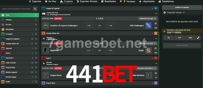 O 441Bet oferece uma grande seleção de opções de apostas em e-sports com probabilidades competitivas